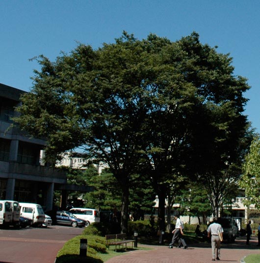 正門から坂を上ってきて,上りきったところに生えている木がケヤキです。